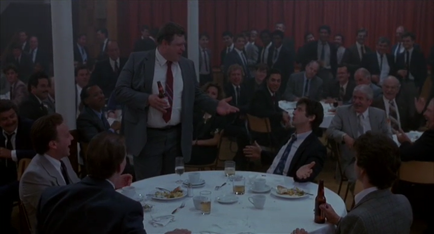 Take one of the opening scenes, for example: A bunch of guys show up at a banquet hall for an event billed as a New York Yankees meet-and-greet, but which turns out to be a sting operation set up by the cops (including Frank), who have issued invites exclusively to criminals with outstanding warrants. It’s an idea so absurd that it seems like it must have been drawn from real life (which, according to director Harold Becker’s DVD commentary, it was), and it makes for a fascinating introduction to the protagonist and his world. Many of the film’s scenes have that feel to them: Real, but in a way that’s vibrant and captivating, and often funny, rather than drab and banal. The characters are the same way. They could easily be stock cliches–the world-weary cop, the bad-news dame–but their dialogue and mannerisms make them seem like genuine individuals. When Frank and a fellow cop played by John Goodman get into an impromptu singalong at an NYPD function, you feel like you’re there laughing along with them.