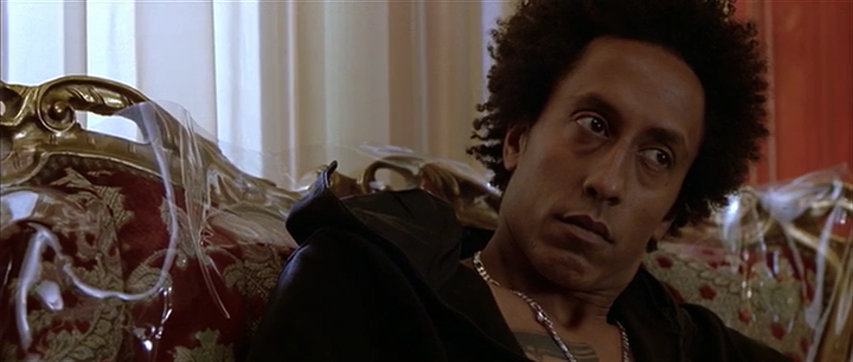 • A couple future cast members of The Wire show up here, including Sonja Sohn as Shaft’s main (well, only) love interest and Andre Royo as–guess what–an underworld police informant. IMDb also claims that Deirdre Lovejoy (The Wire‘s Rhonda Pearlman) appears uncredited as a police officer, but I didn’t spot her.